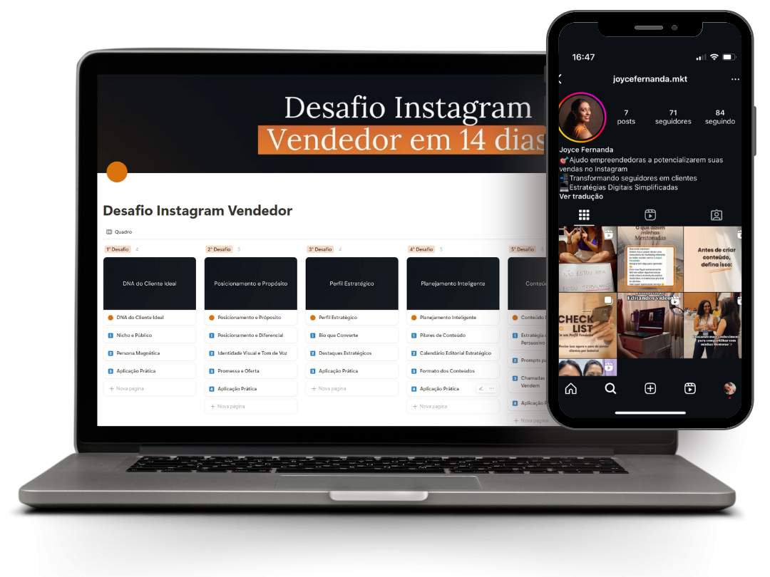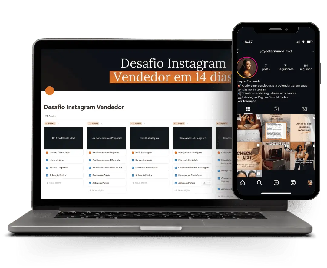 Duas especialistas uniram forças para criar um desafio prático e estratégico, que vai transformar seu Instagram em uma verdadeira máquina de vendas.